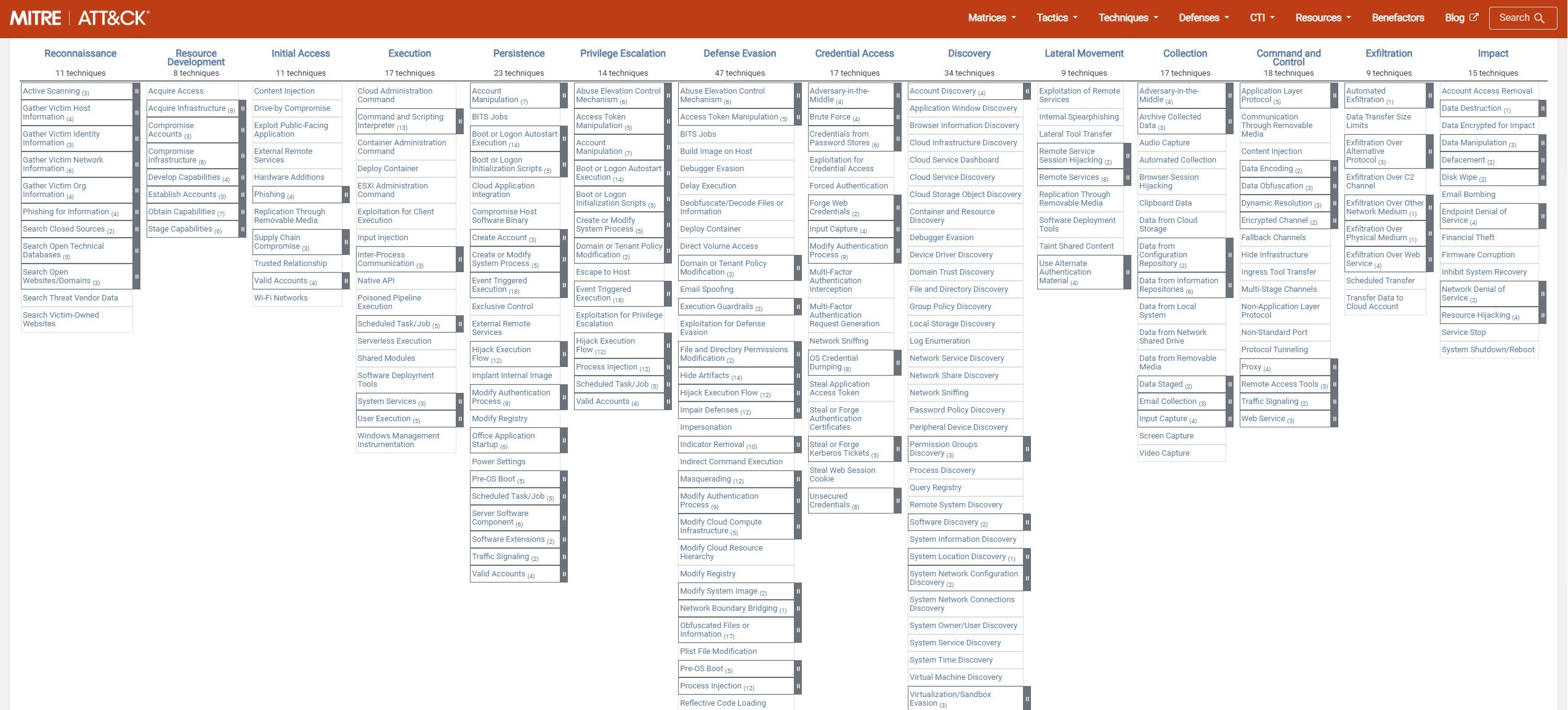 ATT&CK Matrix for Enterprise – MITRE ATT&CK Framework
